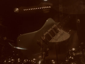 *Schon während der Vorband stand sein Mikrofonständer auf der Bühne und wirkte neben der Sängerin wie eine hohe Reckstange. Als Lord Bishop dann zum Umbau auf die Bühne kam, hat er das Ding zu meinem belustigten Erstaunen dann noch höher gestellt.