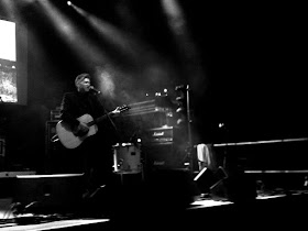 Unterm Strich war der Auftritt aber immer noch als Liveshow zu werten, und zwar als eine extrem coole. Während auf der Leinwand einfach ein schwarzweißer Sechziger-Jahre-Schinken namens "Mamma Roma" durchlief (Leider brach dieser am Ende natürlich mittendrin ab. Was passiert denn nun mit dem jungen Protagonisten, nachdem er verprügelt wurde?),  servierte die Band an Schlagzeug, A- und wabernder E-Gitarre dazu einen lässigen Cocktail aus Postpunk mit sarkastischer Gothic- und Americana-Attitüde. Schmalztollige Cabaretpunks surfen im schwarzen Country-Cadillac durch Las Vegas sozusagen.
